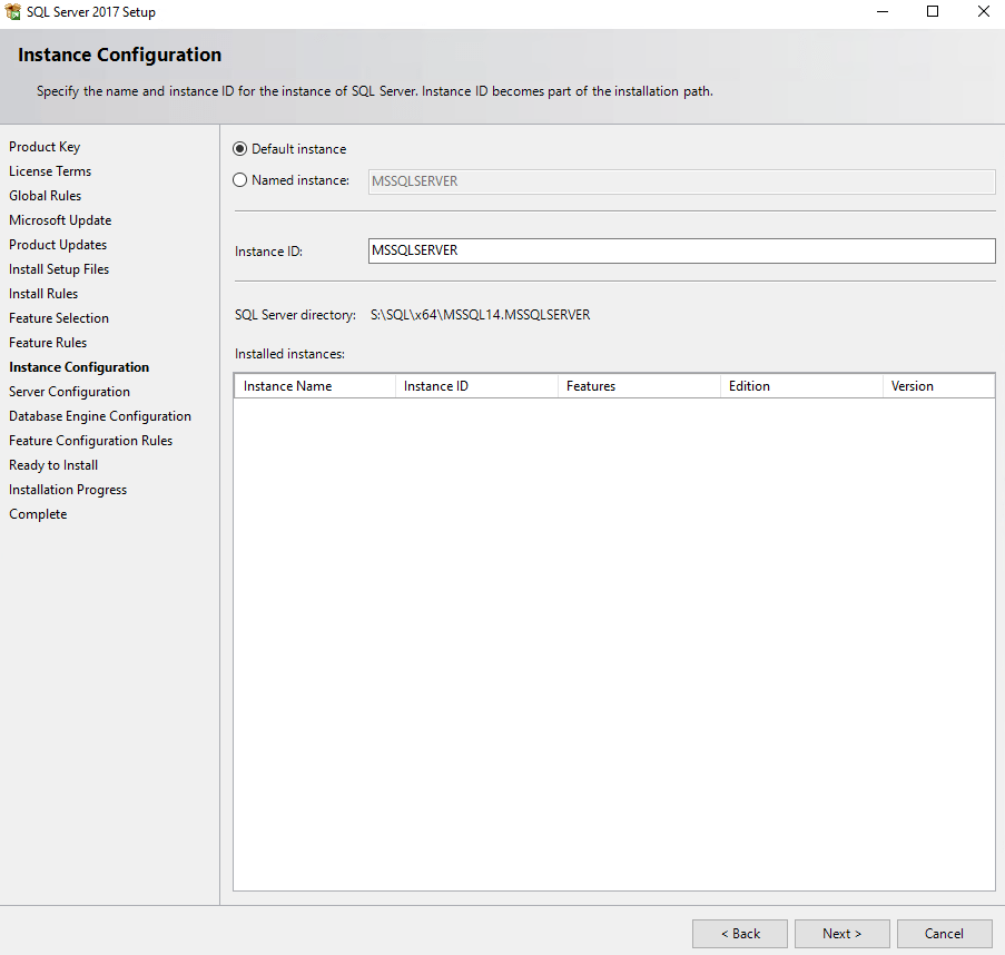 Instance Configuration sekmesinde SQL Server Instance Name’ini belirliyoruz. Burada Default Instance dersek sunucunun kendi ismini alır, Named Instance dersek bizim vereceğimiz ismi kullanır aralarında sistemsel açıdan hiç bir fark yoktur.