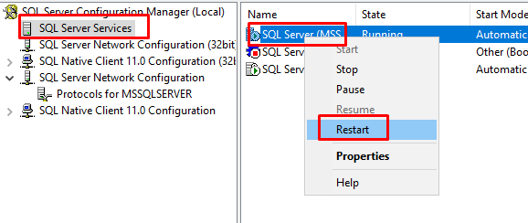 Bu ayarların aktif olması için SQL Serverı restart etmemiz isteniyor.